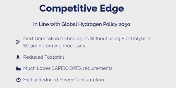 Our technology requires very small power consumption and no chemical reagents to produce 1 kg of pure hydrogen and beating any system out there. Our company is developing new methods for producing hydrogen from water (not electrolysis).